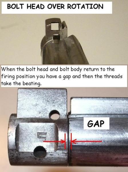 An over-rotating bolt head allows all the recoil to be taken on the threads, with in few rounds your headspace will be back to where it was.