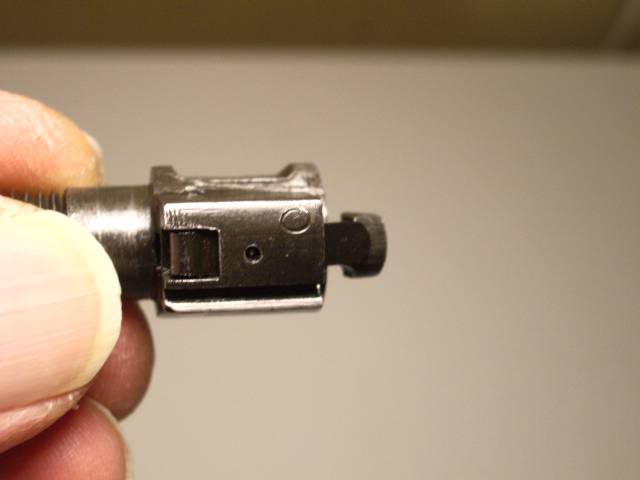 The second is that prior to the point of fully locking, a feature called "mechanical safety" comes into operation and (it's getting technical now...) the stud on the cocking piece will strike the stud between the short and long cam groove at the rear of the bolt causing a diminished force of blow to the striker, resulting in a miss-fire! Phew!
