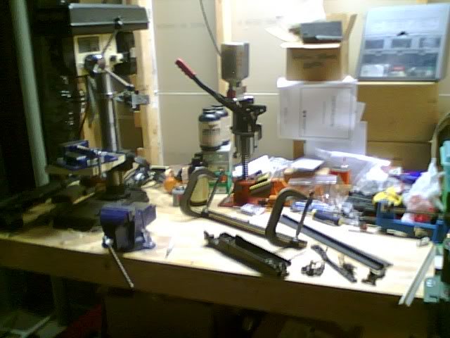 I have some NEWER photos of my build, and the most recent progress (Bolt carrier rails, etc.) but unfortunatetly, my wife 'Cleaned' the house, and now I can't find where my digital camera ran off to! So, I'm sorry for still having crappy cell phone pics!