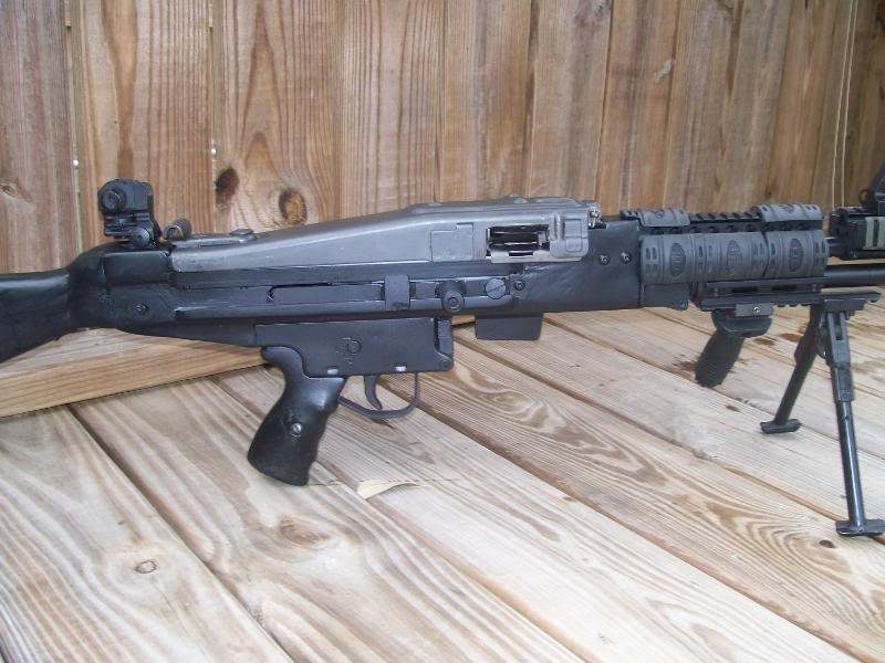 To all that are considering building a MG47, I have nearly got the drawings done for the MG47ES receiver, guide rails, BC modification, BC extension, gas piston modification, gas tube modification, gas block modification, FCG tray, grip stick and a general assembly done and ready to publish. I need to make a drawing of the feed tray modification and front trunnion modification. The MG47ES does not require a lathe, milling machine or a welder to make. It is interchangeable between a grip stick or a spade grip. I used a RPK kit for it but you can use a Romy AK kit as a bases also. Watch GUNCO.net under the MG47 and MG47ES thread for more detailed info on these builds and the status of the drawings.