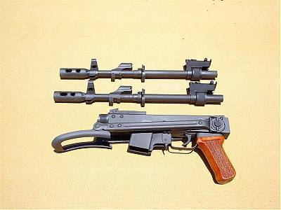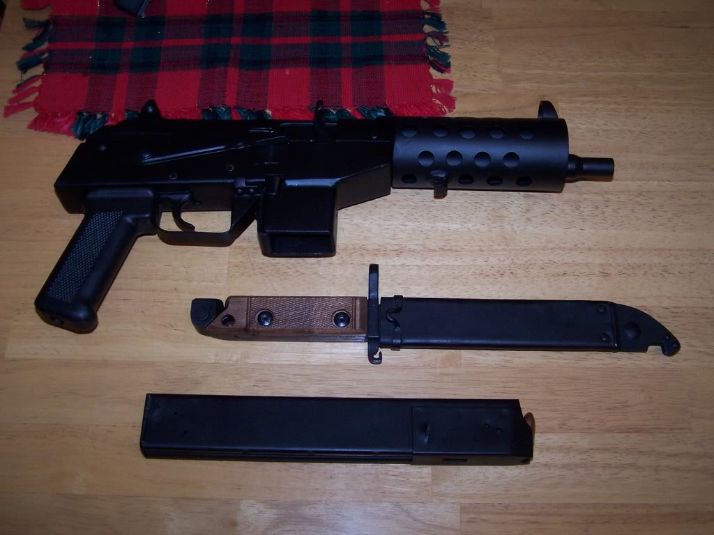 2) takedown AK. Slip fit barrel, Uzi barrel nut.
