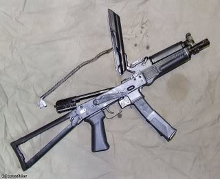 3) Croatian APS95. Note the lack of a conventional TSB and the carry handle/sight (scope?) arrangement. I get the idea they designed this for a fixed stock, because the sharp slant cut at the back needs an extension for the folding stock. The front handguard looks PSL-ish, but I think it's just thinner than a regular AK guard.