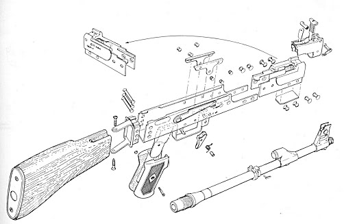 2) My Chinese military milled receiver had full round rivets on the trigger guard. But this scan from an old Soviet armorer's manual shows clipped rivets.