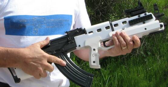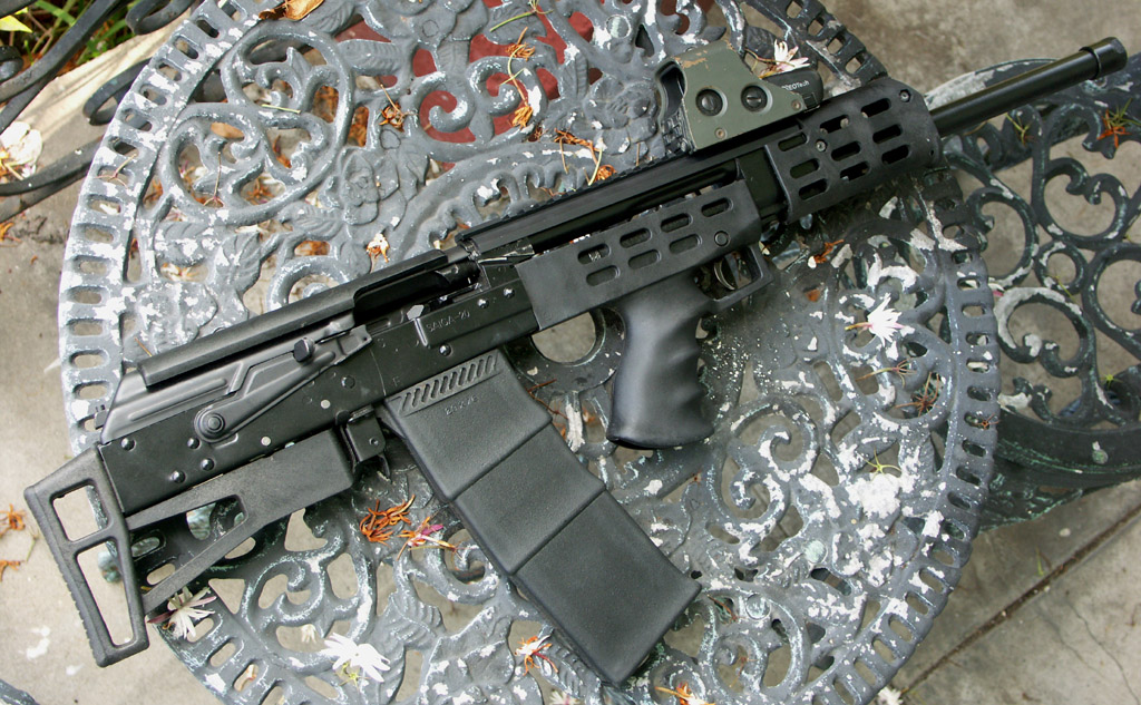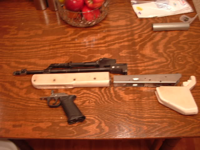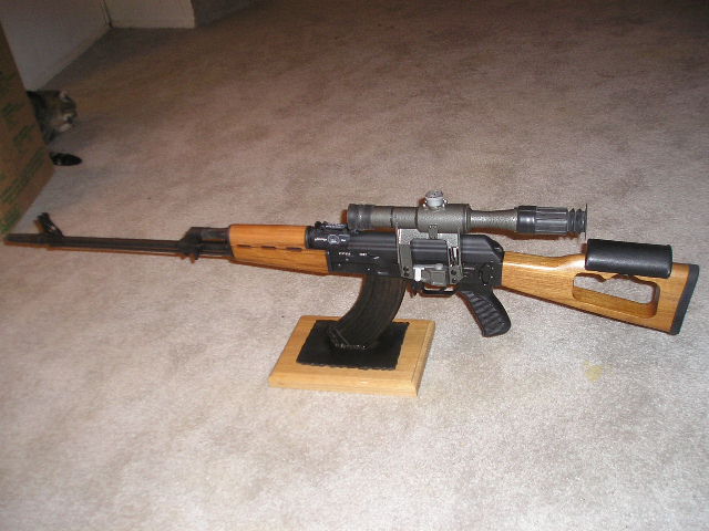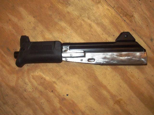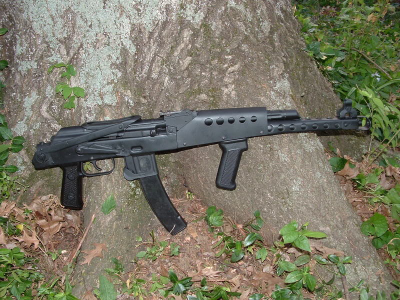 5) someone who didn't like the "backwards" Romanian foregrip. And I agree with this guy; the Romy is great if you're holding the gun at your hip, not very comfortable if you're holding it up at your shoulder. Plus slanting it this way would clear a normal underfolding stock.