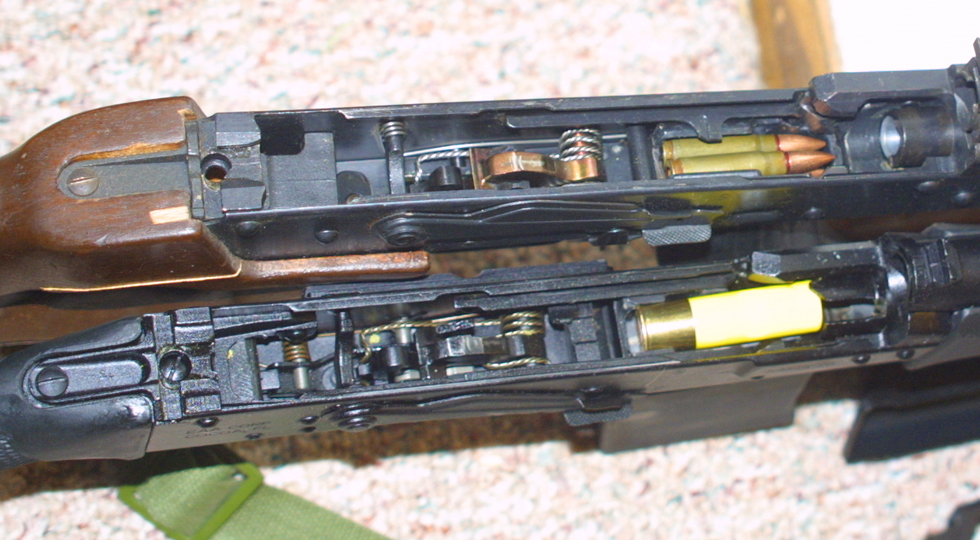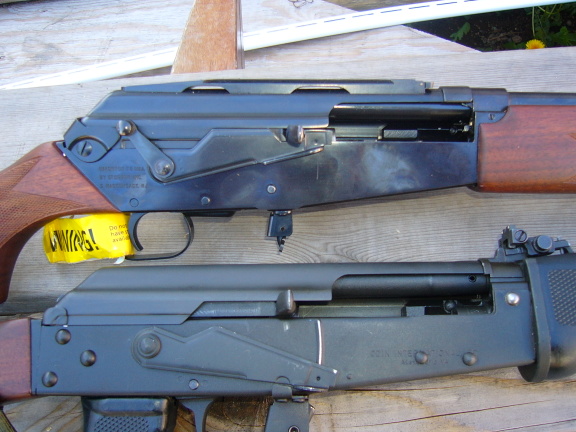 2) AKM vs Saiga - note extra axis pin behind safety.