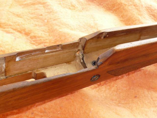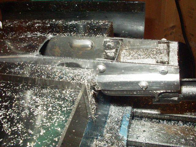 2) milled Chinese Hunter. Uses slant-cut receiver like the Valmet Hunter, but they didn't move the trigger group back. Instead they lengthened the trigger and left the axis pins where they were. The rear of the trigger guard has the rivet on the inside since the rivet holes weren't moved, either. Reinforced top cover is screwed to receiver.