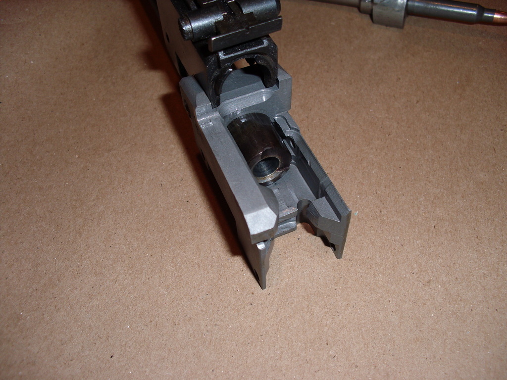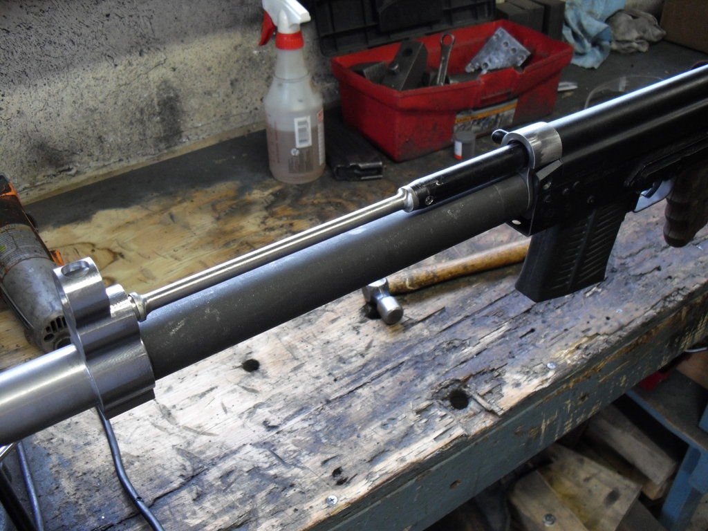 6) The filename is "AK22-2.jpg", but this might be one of those .17 cartridges. I would have just pushed the barrel through the front until the headspace was right and moved on; this guy did it the hard way by cutting the barrel to clear the locking lugs, then pushing it in from the back. I can't fault his workmanship, but I wonder why he did it that way.