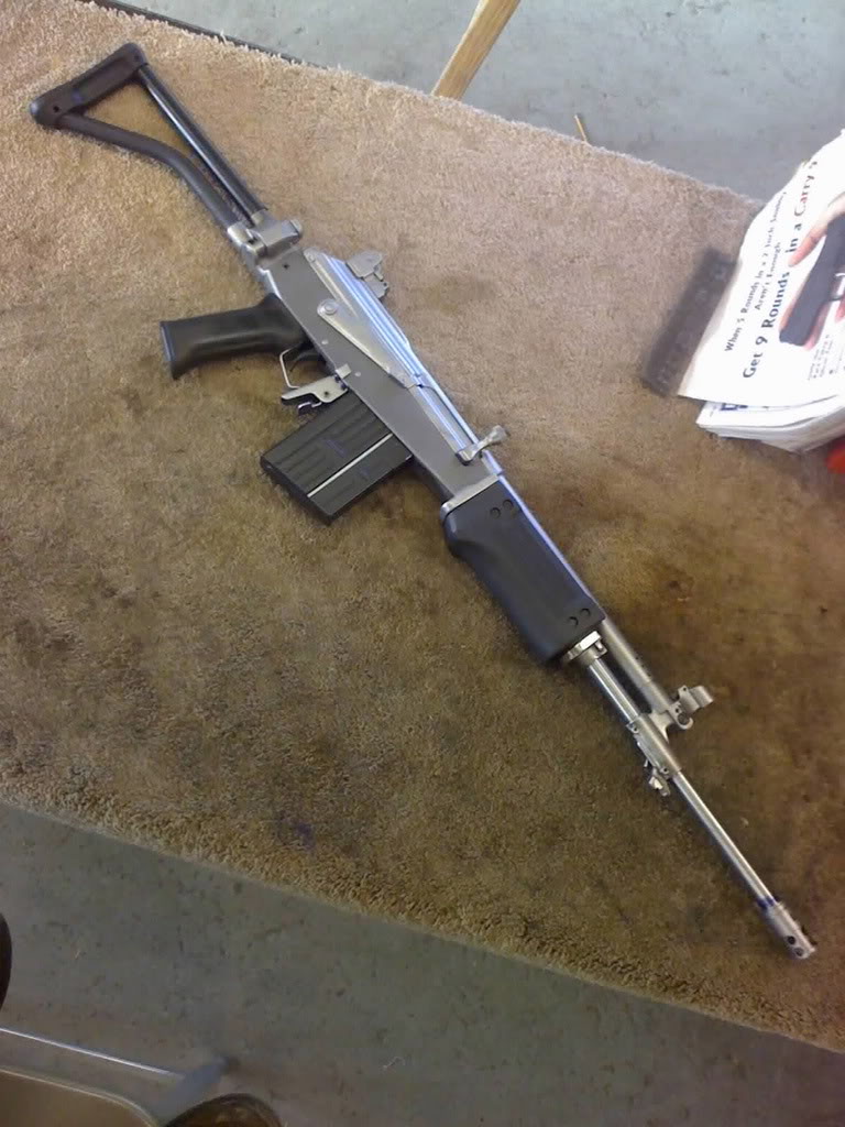 3) AK-54R. I've seen a couple of these now. It's a PSL with the barrel shortened, gas block moved back, and AK stock bits. I will build one of these when I get some of my current projects finished.