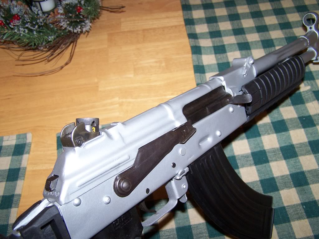 3) a Romanian build in silver Duracoat. It takes some getting used to, but lay a black gun on a tailgate for a while on an Arkansas summer day, and your hand will sizzle when you pick it up.