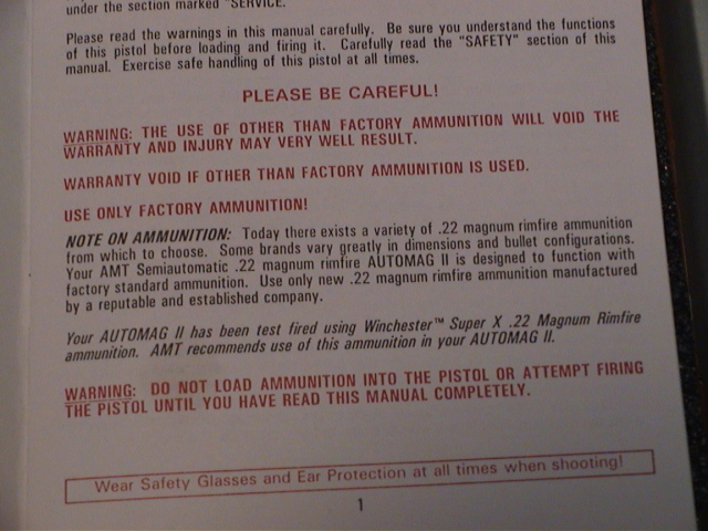 I just looked up this question about the ammo. Found it stamped on the inside of the AutomagII box cover and printed inside the instruction manual of my 4.5 version. I think this is an early version because it was in a heavy duty box like the other AM III-V. I also check my 6" version which is a flimsy box with plastic insert holder, found no markings on the inside box cover or in the manual about ammo selection BUT it had a paper insert in the box with advice on what ammo to use.
