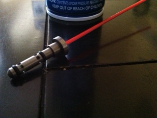 With all this talk about the AMII and while currently having one in for repair I decided to go the extra mile on cleaning the gas chamber. I made this tool which fits tightly in the chamber via O-Rings and traps the two sets of gas ports that are in the chamber. I drilled two sets of 6 holes matching the same location as the chamber ports, intersecting the thru hole I drilled form the end. Using an off-the-shelf can of "Dust Destroyer", I made the hole in the end to fit the red plastic tube that comes with the can. Inserted into the new tool, I attached it to the can and pulled the trigger. The air goes into the gas system and blows the residue out thru the ports that sit in front of the chamber. It works great! Thought I'd share it with you all.