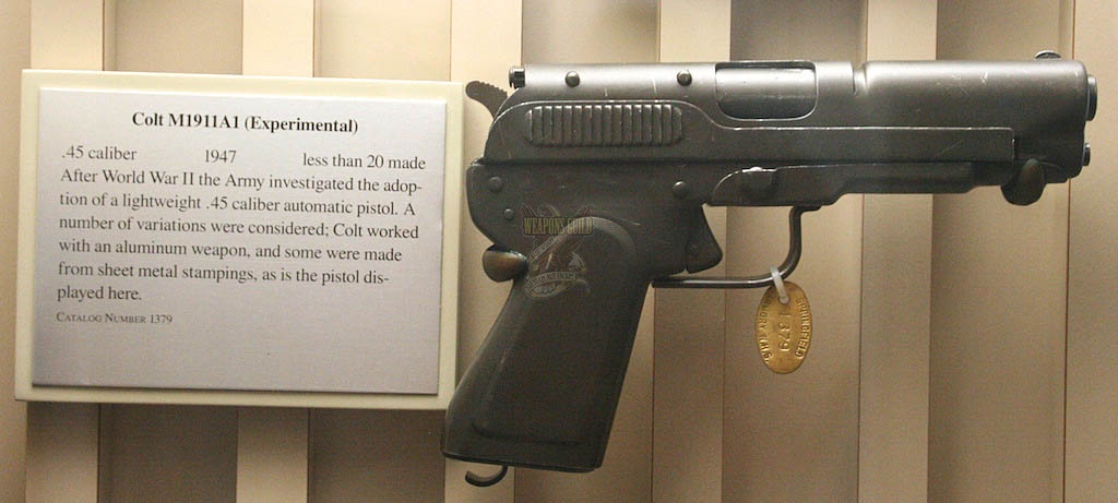Though that's undeniably sheet metal, and probably a .45, it's definitely not a 1911. Note, among other things, the hinged trigger instead of a sliding trigger, the lack of a grip safety, and if the slide dimple is any indication, only one locking ridge instead of three. There also doesn't seem to be a barrel bushing. Or magazine release, for that matter.