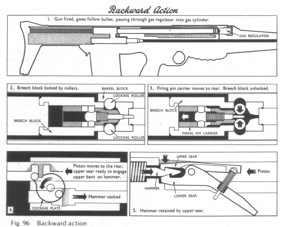 The gas system moved the firing pin carrier, which moved the outer sleeve. It looks like it was a very long stroke gas system.